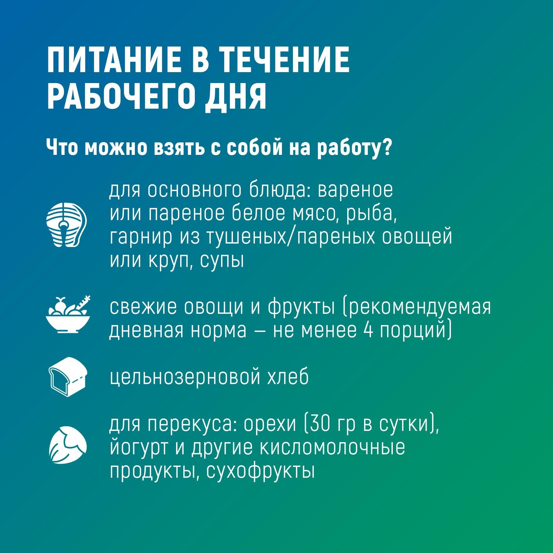 Что взять с собой на здоровый перекус, какие упражнения можно выполнить прямо на стуле и как избавиться от курения на работе? Об этом читайте в карточках.